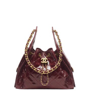 Chanel 25 Small Handbag Shiny Crumpled Calfskin & Gold-Tone Metal Burgundy
