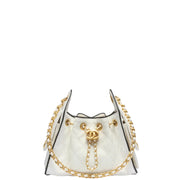 Chanel 25 Mini Handbag Braided Raffia, Calfskin & Gold-Tone Metal White & Black