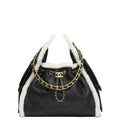 Chanel 25 Small Handbag Crumpled Shearling Sheepskin & Gold-Tone Metal Black & White
